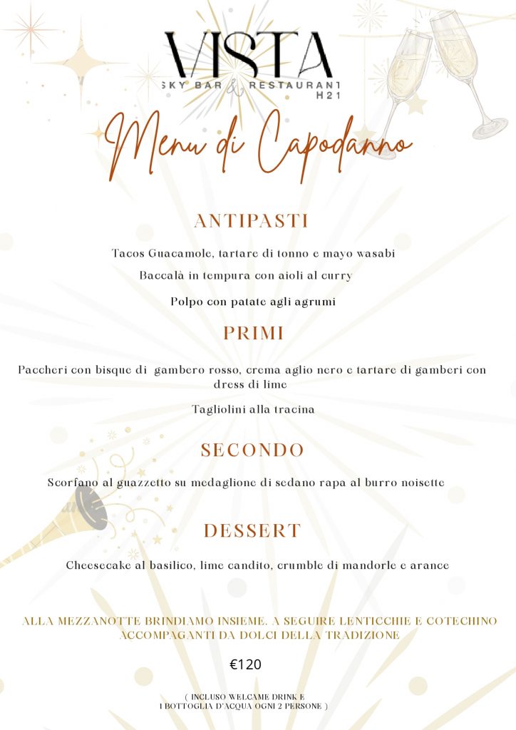 Passa il Veglione di Capodanno presso Vista il ristorante sul roof-top dell’Hotel Twentyone. E’ la soluzione ideale per concludere il 2025
